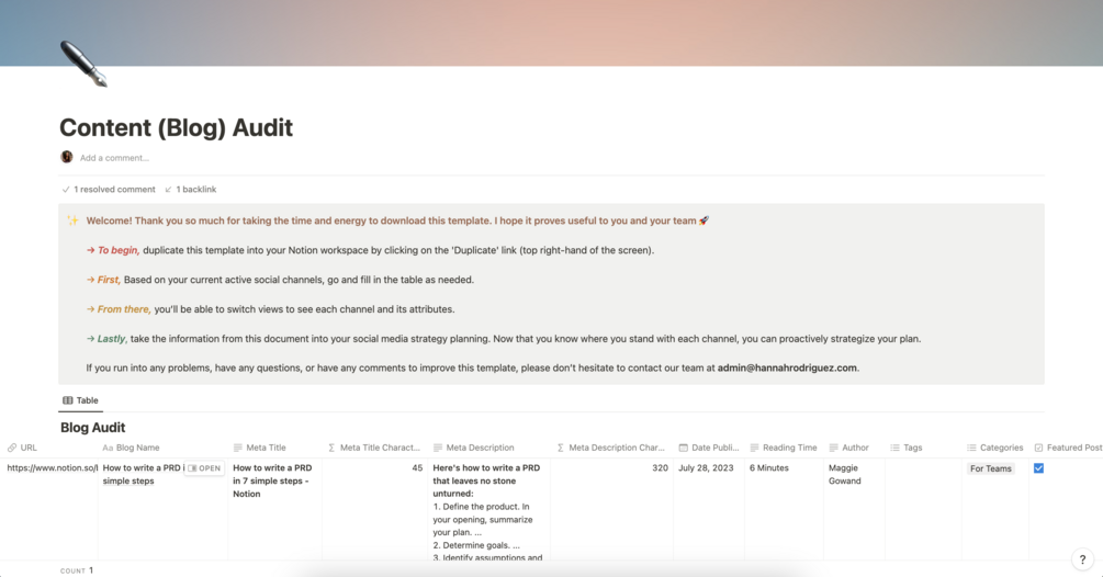 This Content (Blog) Audit Template is a powerful tool designed to help you analyze and elevate your business’ blog performance.